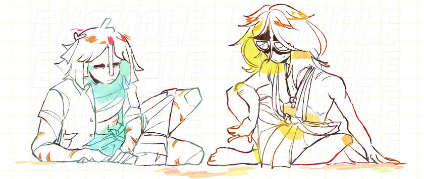 I will NOT draw NSFW, heavy gore (blood and VERY mild gore is OK), detailed mecha, detailed backgrounds, complex poses, or hate speech.I can reject your commission without providing a reason.If you wish to commission artwork of someone else's oc, you must provide the agreement of said someone else for their character to be drawn by me.You may share your commission on social media, but only with the proper credits given to me.The maximum delivery time is two weeks to two months, depending on the piece and the number of commissioners before you.FOR COLOR/SHADING/FULL RENDER:
